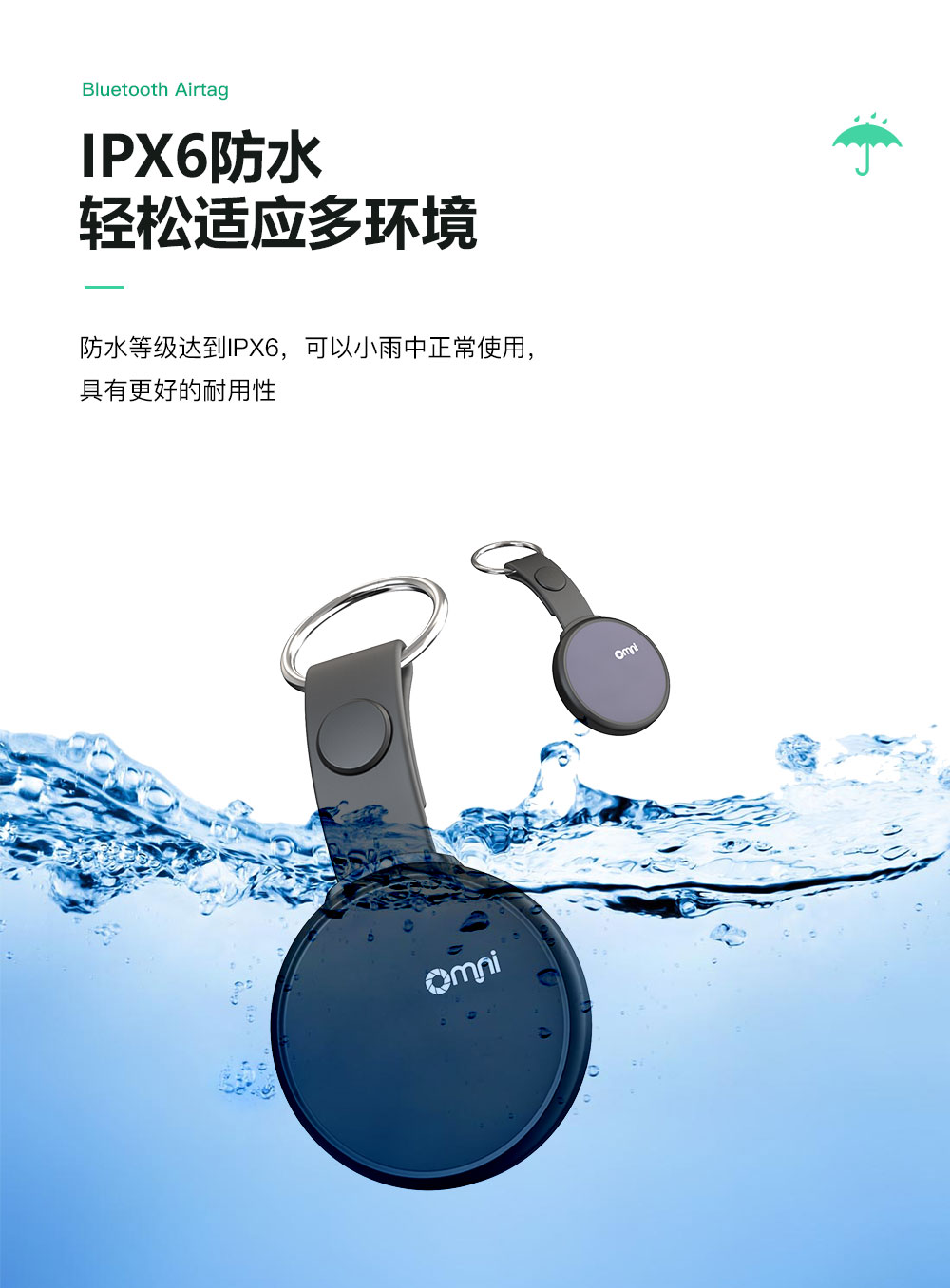 防水功能:歐米藍(lán)牙物品定位器防水等級達(dá)到IPX6防水,可以小雨中正常使用,具有更好的耐用性。